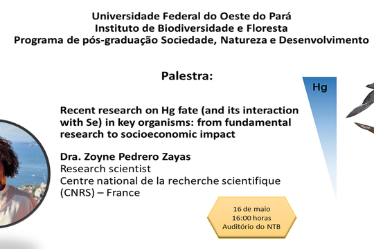 O SND terá como convidada a pesquisadora Dra. Zoyne Pedrero Zayas do Centre national de la recherche scientifique (CNRS), o maior órgão público de pesquisa científica da França. A pesquisadora irá participar da disciplina optativa do programa “Seminários em Ciências Ambientais“. A palestra intitulada “Recent research on Hg fate (and its interaction with Se) in key organisms: from fundamental research to socioeconomic impact” será realizada nesta terça-feira, dia 16 de maio de 2023 as 16:00 horas no auditório do NTB .